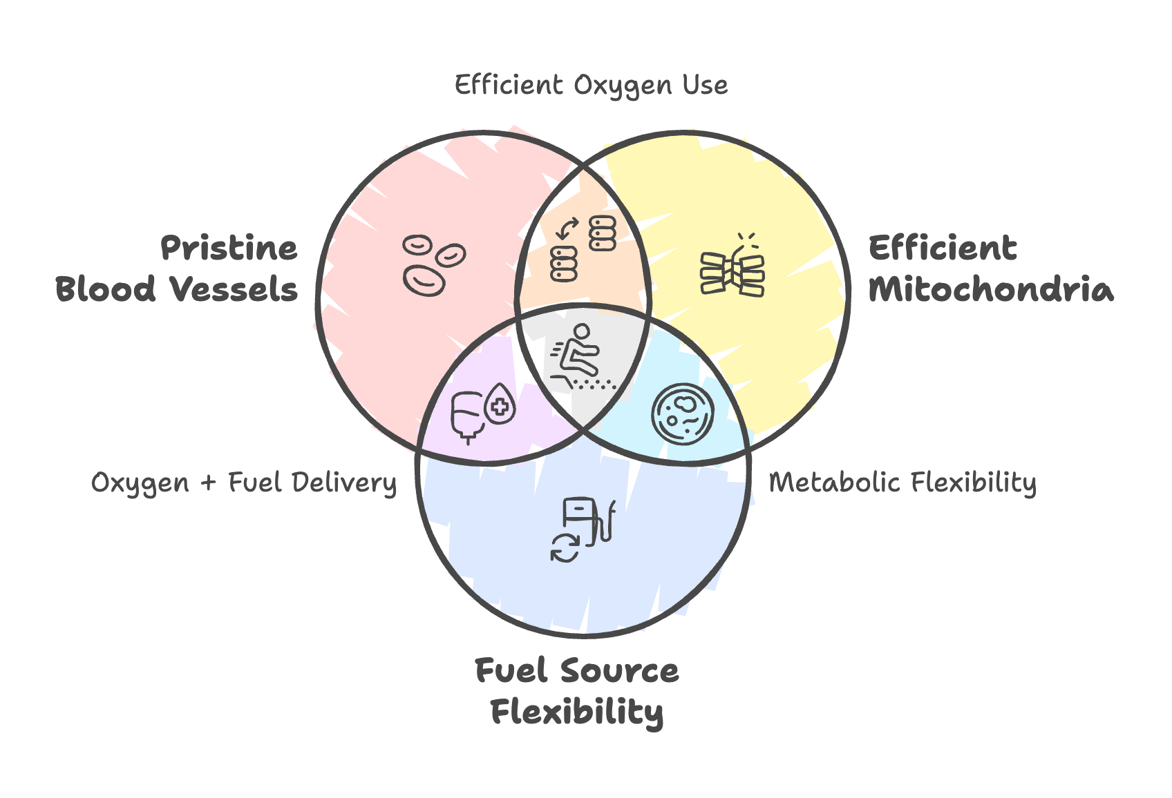 Your body's ability to process oxygen (measured by VO2 max) is like your engine's maximum horsepower—one of our best predictors of longevity. But here's the key: raw horsepower means nothing if your engine can't efficiently deliver fuel.
