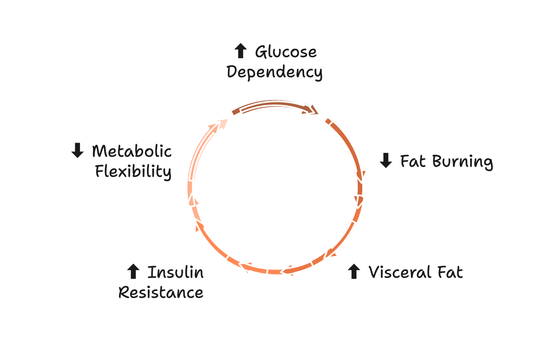 The more glucose-dependent your system is, the worse your body gets at burning fat 🔥