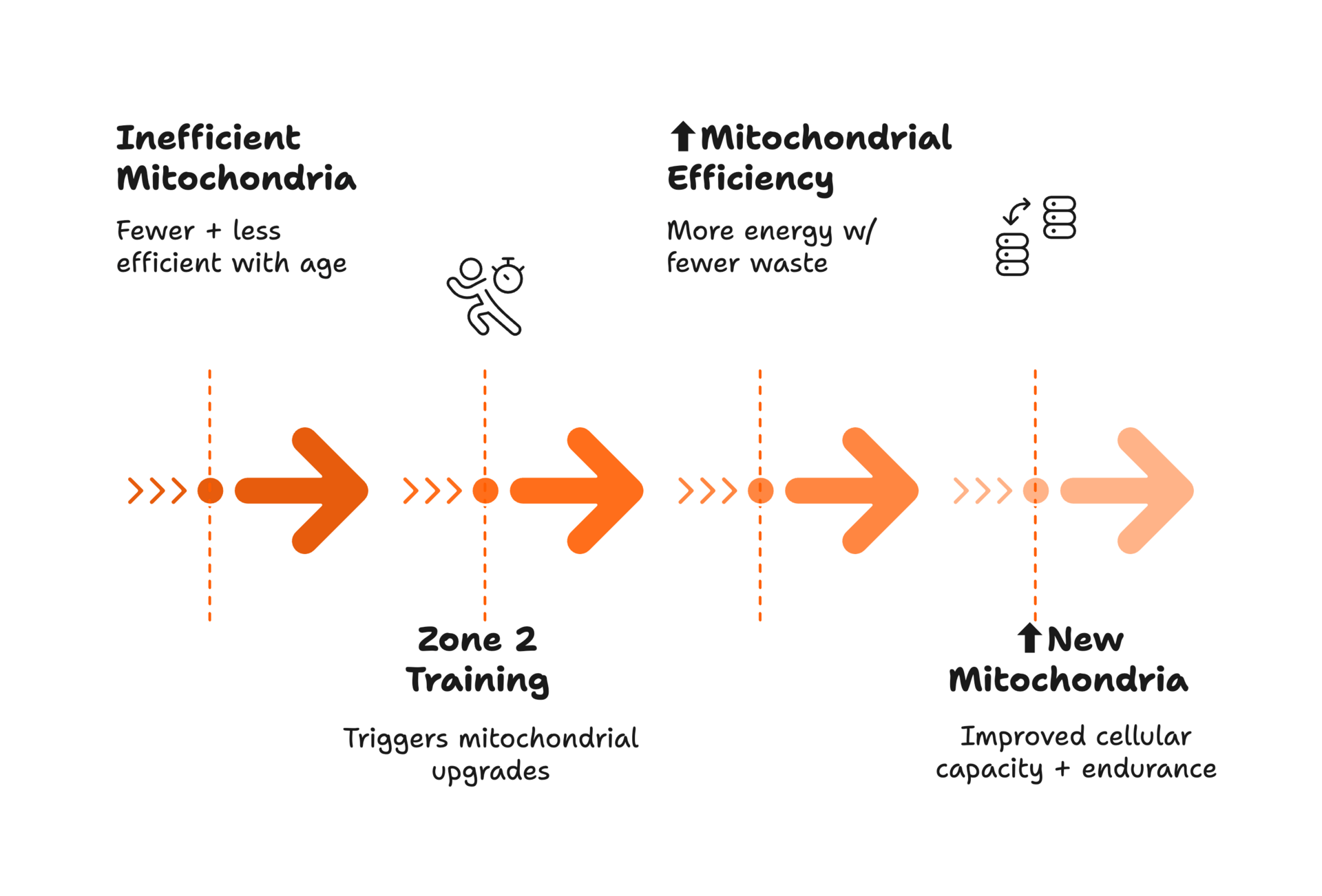 Your existing mitochondria learn to burn more efficiently, producing more energy with less waste ♻️